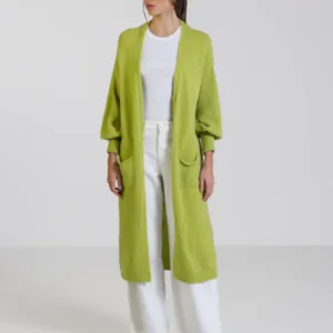 Made in Italy from an ultra-soft baby alpaca blend, this cardigan offers a sumptuous feel against the skin. Its relaxed silhouette features comfortable balloon sleeves and practical front pockets, making it a versatile piece for any occasion. The vibrant lime hue adds a refreshing pop of colour to your wardrobe.